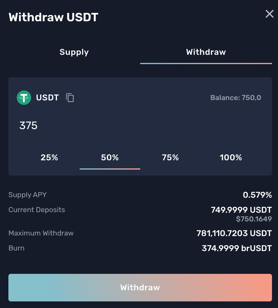 + Maximum Withdraw: The total number of USDT that are available to withdraw in this pool