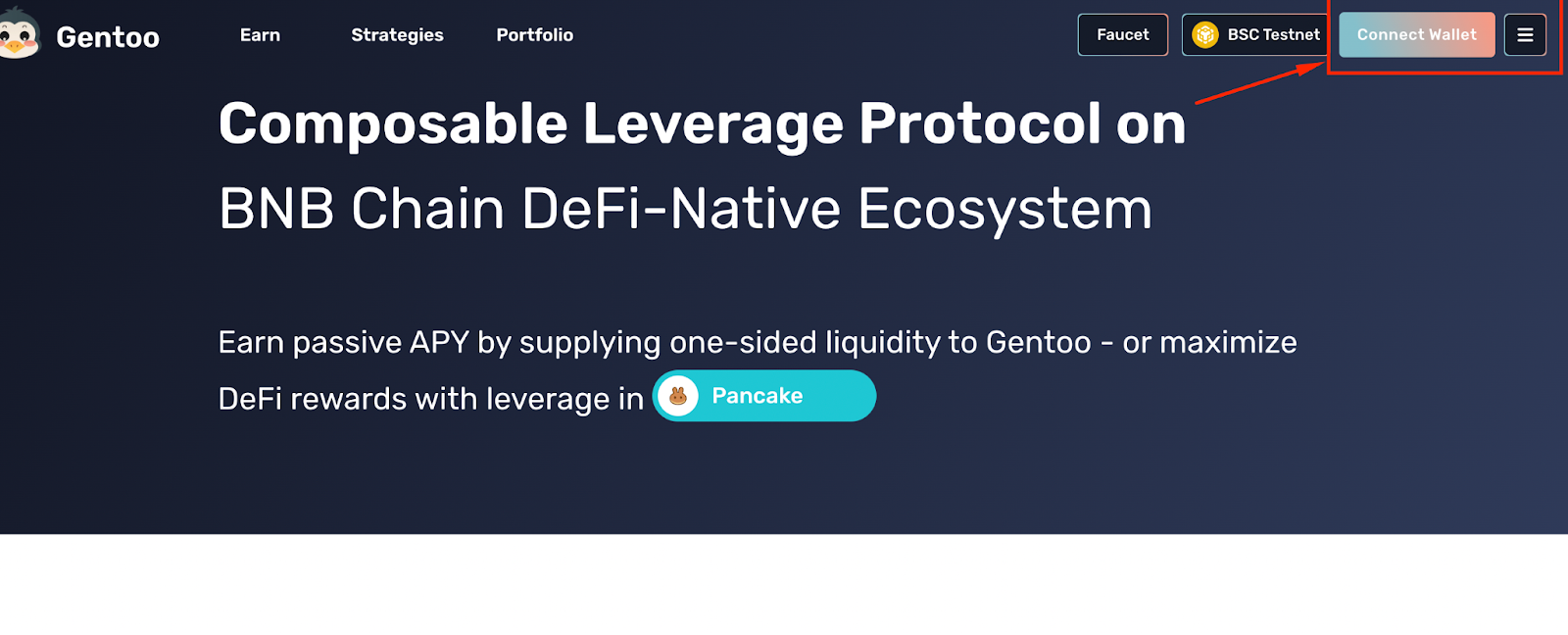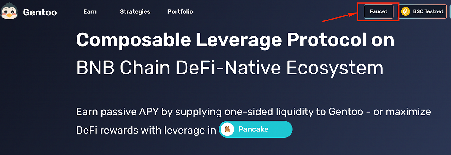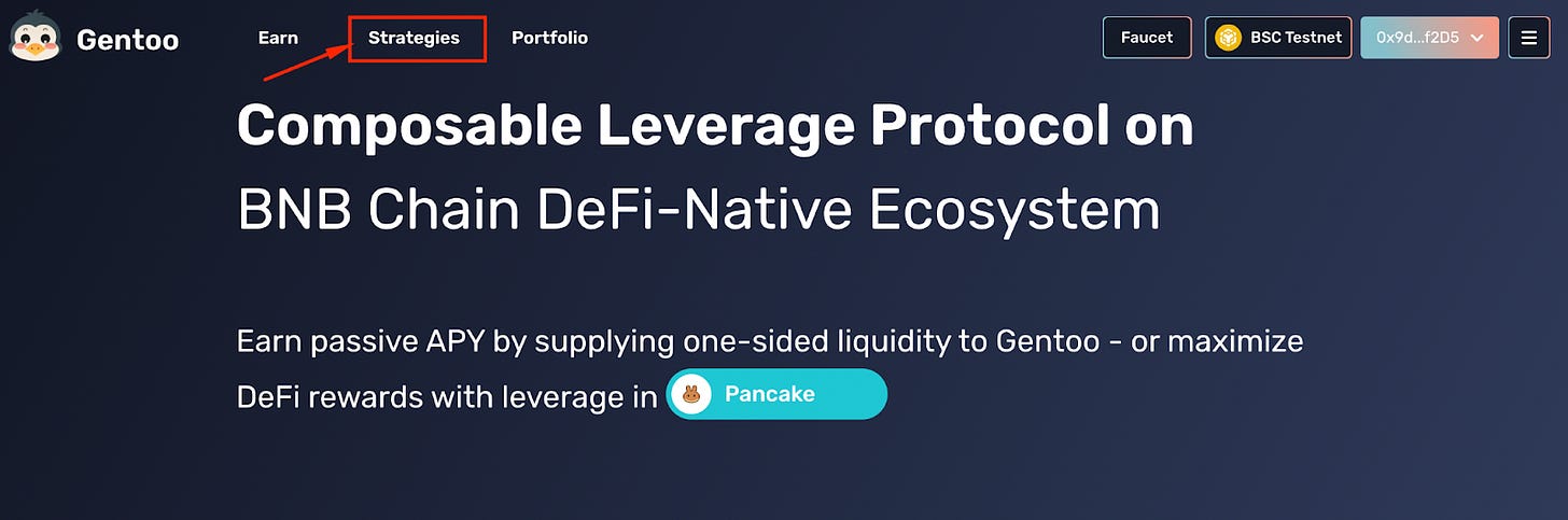 Step 1: Access Gentoo testnet: https://app-testnet-beta.gentoo.finance/