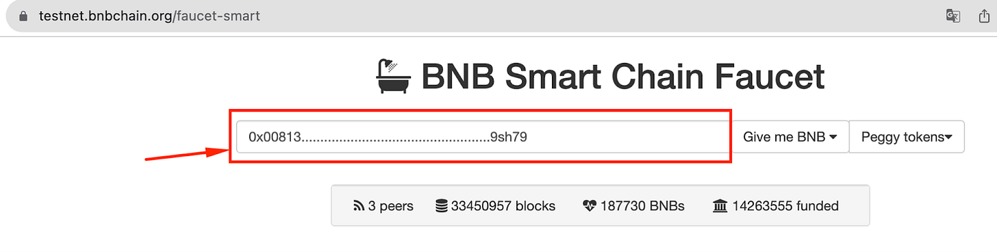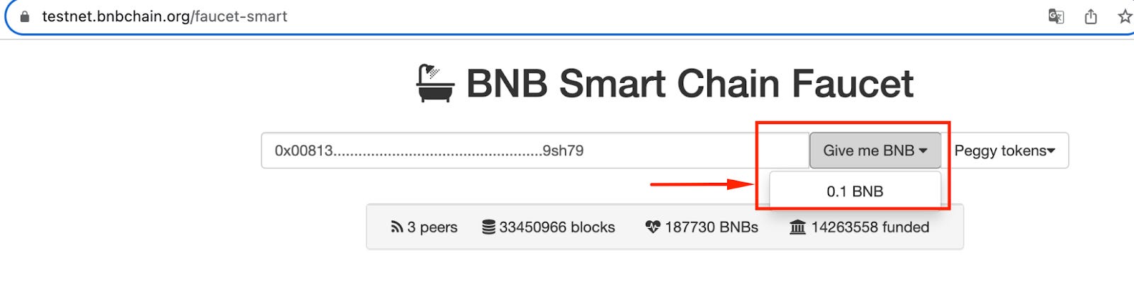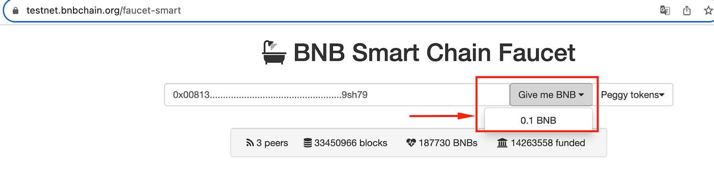 Step 1: Access BNB Testnet faucet: https://testnet.bnbchain.org/faucet-smart