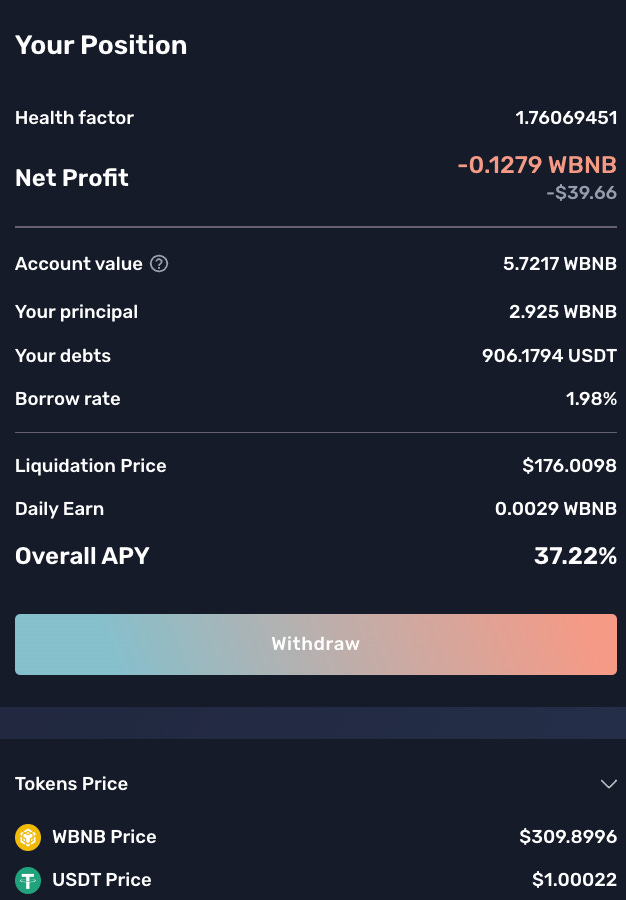 - After a few waits, you will see your position with all the details and the number of funds you earn daily (in WBNB)