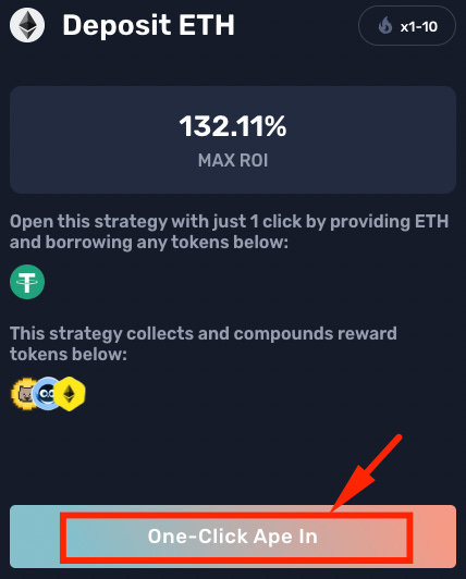 - Enter the number of ETH you want to deposit and the leverage (from 1-10) you want to borrow.